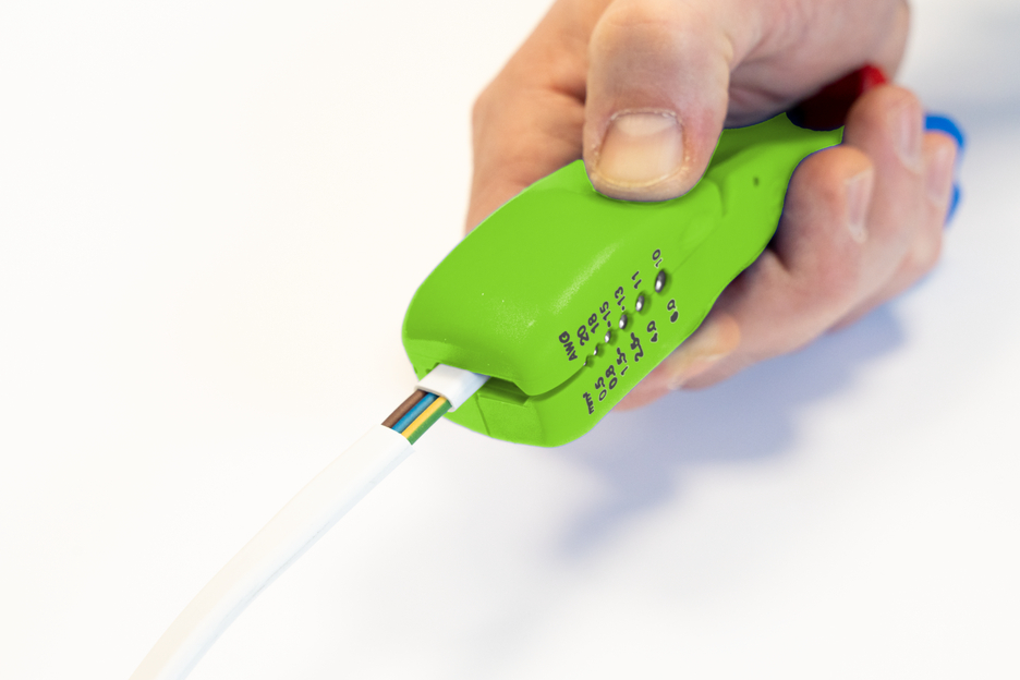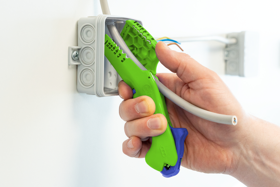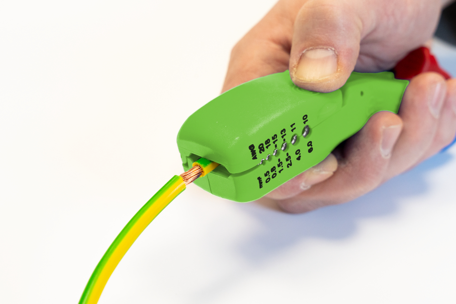 Le couteau pour câbles plats et ronds permet de dénuder tous les câbles plats et ronds courants de manière rapide, précise et sûre. L'outil a été conçu pour des câbles plats d'une largeur maximale de 18 mm et pour des câbles ronds d'un diamètre maximal de 13 mm. .Grâce au guide-câble situé à la tête de l'outil, les coupes longitudinales sont très faciles à réaliser, en particulier sur les longues distances. Les coupes longitudinales peuvent être effectuées aussi bien sur des câbles plats que sur des câbles ronds. Sous le guide-câble se trouve un couteau intérieur rotatif. Comme tous les couteaux à câbles WEICON TOOLS, il permet d'effectuer des coupes circulaires et longitudinales sur des câbles ronds (de 6 à 13 mm) en une seule opération. Une molette de réglage verrouillable permet de régler confortablement et précisément la profondeur de la lame par paliers de 0,1 mm à 3 mm. Cela permet d'éviter d'endommager les couches plus profondes. Deux autres lames ont été intégrées à la base de cet outil pratique. Celles-ci servent à inciser parallèlement la gaine extérieure ou l'isolation. Ainsi, la gaine extérieure peut être facilement retirée, même dans des environnements très étroits, comme les boîtes de dérivation ou les canalisations de câbles. La conception spéciale de l'outil permet de dénuder des longueurs importantes aussi bien du côté de la tête que du pied. Les câbles plats d'une largeur maximale de 18 mm et les câbles ronds d'un diamètre maximal de 13 mm peuvent être facilement passés à travers l'outil. Une fonction de dénudage supplémentaire a été placée sur le côté inférieur du boîtier de l'outil. Il permet de dénuder tous les conducteurs flexibles et massifs courants d'une section comprise entre 0,5 et 6 millimètres carrés.