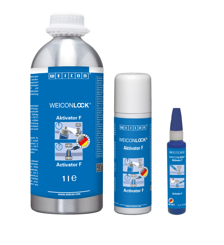 Le prétraitement par l'activateur F permet de réduire fortement le temps de prise. L'activateur est également recommandé pour toutes les surfaces passives ou quand la température ambiante est basse (à partir de +10 °C/+50 °F et au-dessous) ou lorsque le jeu est important. Dans le cas de surfaces non métalliques, WEICONLOCK ne durcit que sous l'influence de l'activateur.