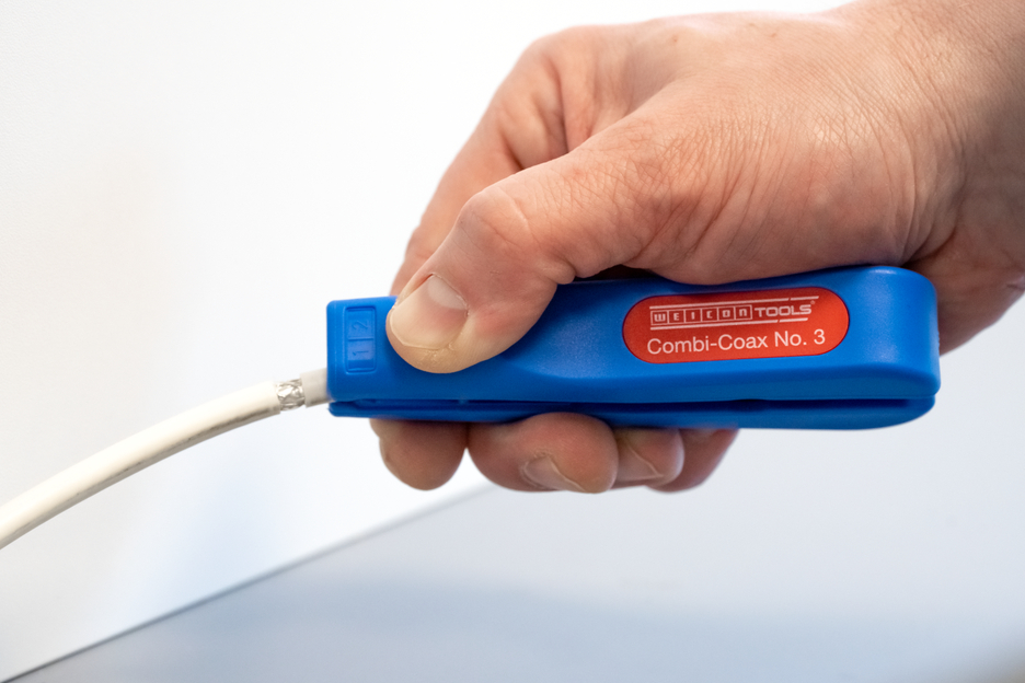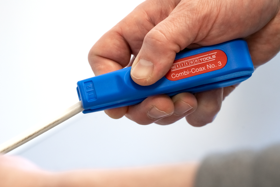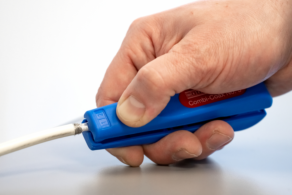 Capacité 4,8 - 7,5 mm Ø Convient également pour les câbles multibrins Coupe-fil latéral intégré facile d'accès, capacité max. 8 mm Ø Dénudage par étapes de tous les câbles coaxiaux courants