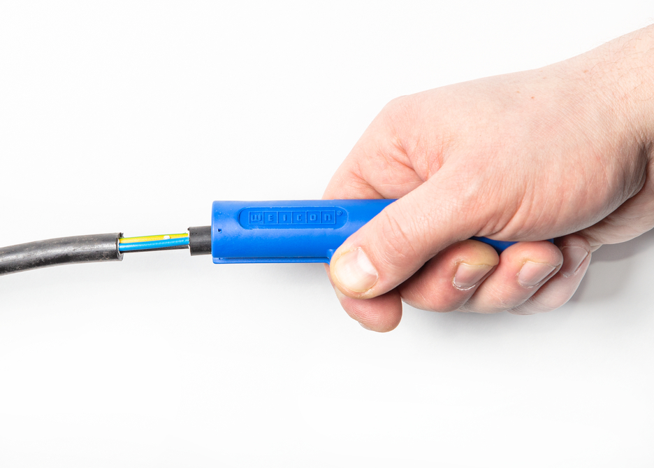 Pour tous les câbles ronds courants (8 - 13 mm Ø) | Dégainage à fleur même dans des endroits difficiles d'accès. | Le manche ergonomique tient bien en main, ne glisse pas et permet de travailler en toute sécurité.