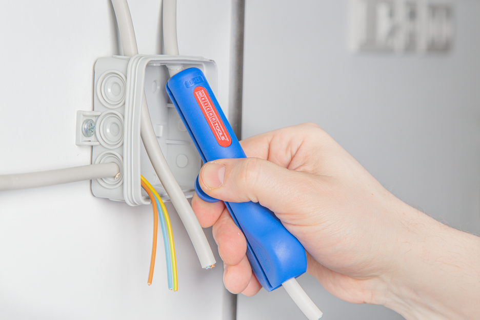 Pour tous les câbles ronds courants (6 - 13 mm Ø) | Dégainage à fleur même dans des endroits difficiles d'accès. | Le manche ergonomique tient bien en main, ne glisse pas et permet de travailler en toute sécurité.
