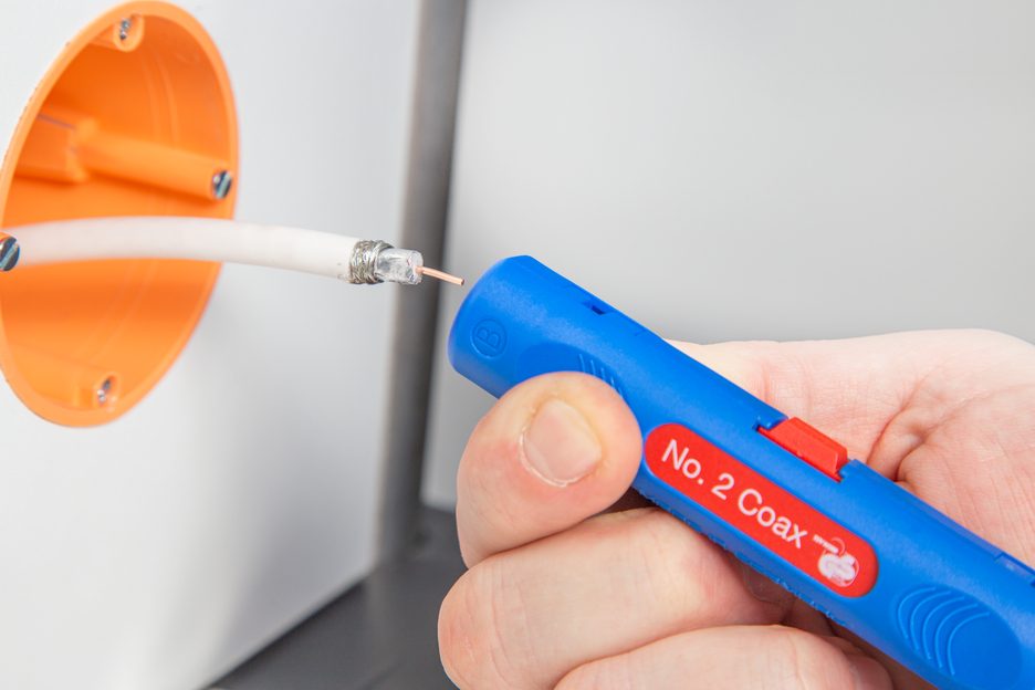 pour dégainer et dénuder les câbles coaxiaux, capacité 4,8 - 7,5 mm Ø