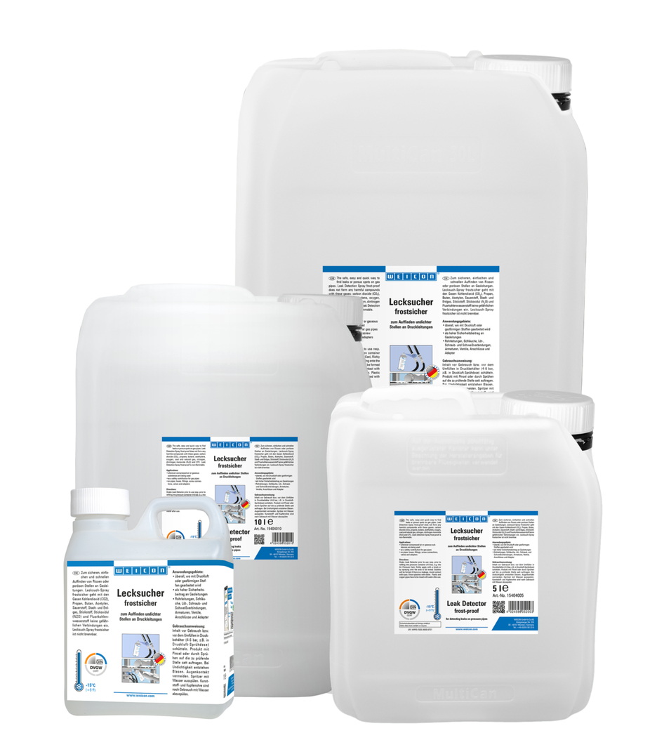 WEICON Détecte-Fuites Ingélif sert à trouver rapidement, commodément et fiablement des fissures ou des porosités sur des conduites de gaz. WEICON Détecte-Fuites Ingélif ne se combine pas avec les gaz tels que le dioxyde de carbone (CO2), le propane, le butane, l’acétylène, l'oxygène, le gaz de ville ou naturel, l'azote, le protoxyde d'azote (N2O) et les hydrocarbures fluorés pour former des composés dangereux et il est incombustible. WEICON Détecte-Fuites visqueux convient pour le travail avec de l’air comprimé ou des substances gazeuses, comme p.ex les conduites, conduites tuyaux, assemblages brasés, vissés et soudés, armatures, vannes, raccords et adaptateurs.