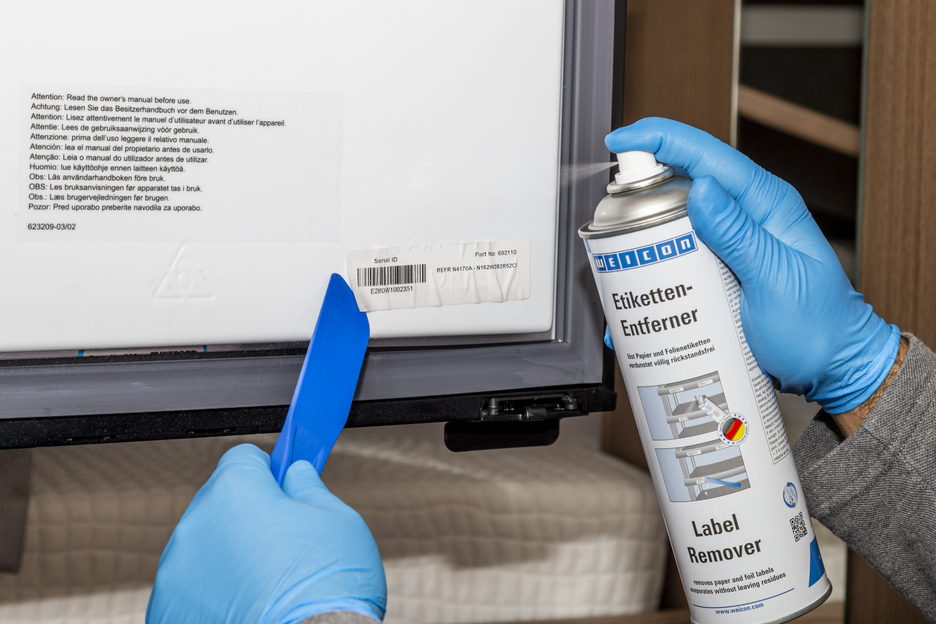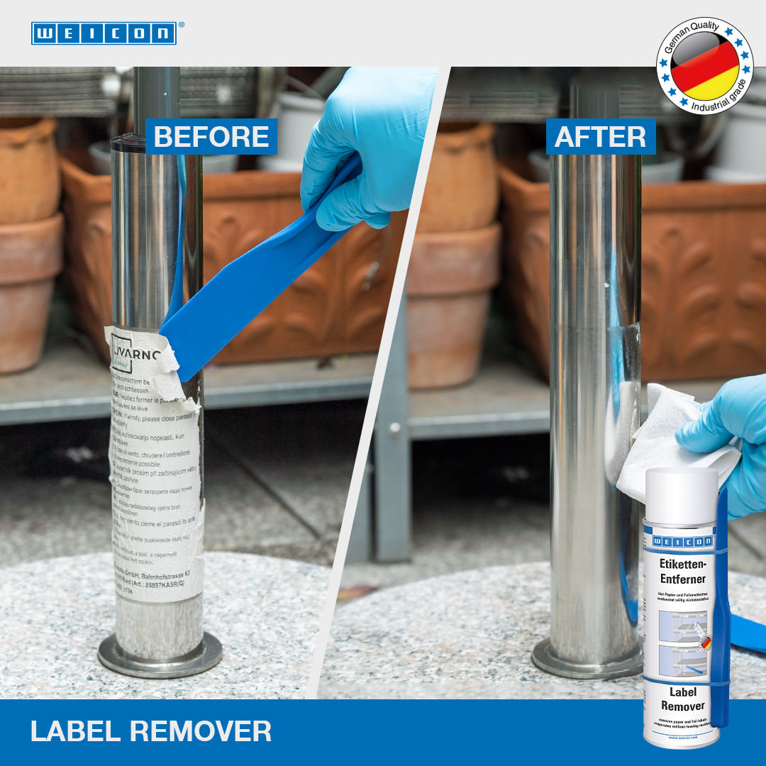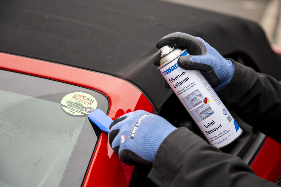 WEICON Dissolvant d'Etiquettes élimine facilement et vite les étiquettes de papier et les résidus d'adhésifs à base d'acrylates et de caoutchouc. Le Dissolvant d'Etiquettes WEICON convient à de nombreuses surfaces, comme le verre, le métal, le bois, les pellicules et les plastiques. Le Dissolvant d'Etiquettes enlève facilement et sûrement les étiquettes collantes, les étiquettes de prix (p.ex. en cas d'erreurs d'étiquetage), les étiquettes d'adresses et de produits, détache les plaquettes signalétiques, élimine les restes d'étiquettes et détache les résidus d'adhésifs des étiquettes en matière plastique, p. ex. les vignettes sur les pare-brise des voitures particulières.