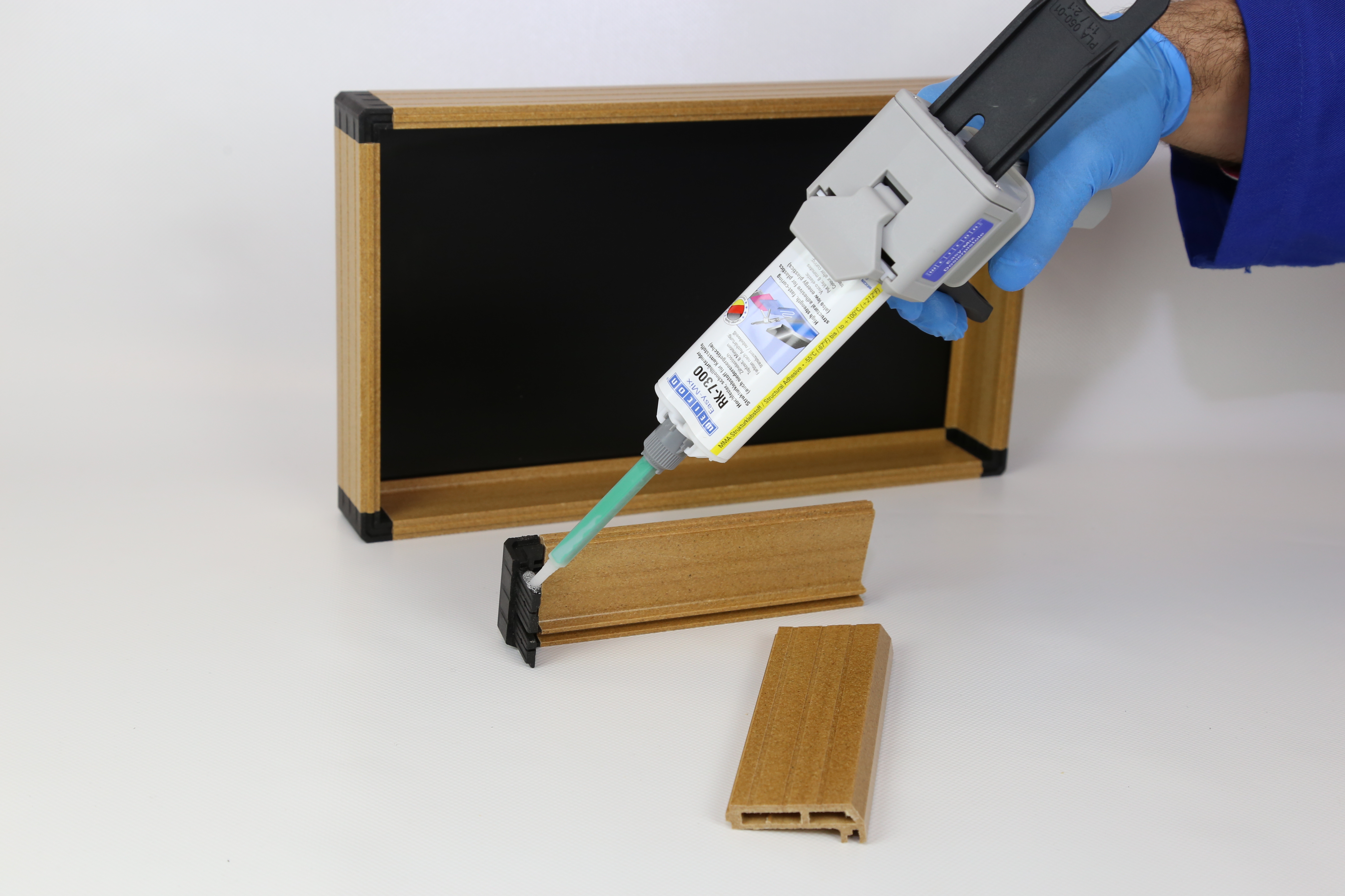 WEICON Easy-Mix RK-7300 est un adhésif structural sans solvants sur la base de MMA (méthacrylate de méthyl) à durcissement rapide. Cet adhésif adhère très bien sur des différentes matières et montre une rapide augmentation de l‘adhésivité. Convient universellement pour des charges statiques et dynamiques. Le collage à haute résistance est également possible avec les plastiques à faible énergie comme le PE ou le PP. Sa visco-élasticité permet également des combinaisons de matériaux avec différents coefficients de dilatation, comme le plastique / aluminium ou l'acier. Des charges spéciales (billes de verre) assurent un joint adhésif constant de 0,25 mm. Largeur de joint maximale: 1 mm. Pour l'application des produits Easy-Mix 50 ml, le pistolet de dosage Easy-Mix D 50 est nécessaire.