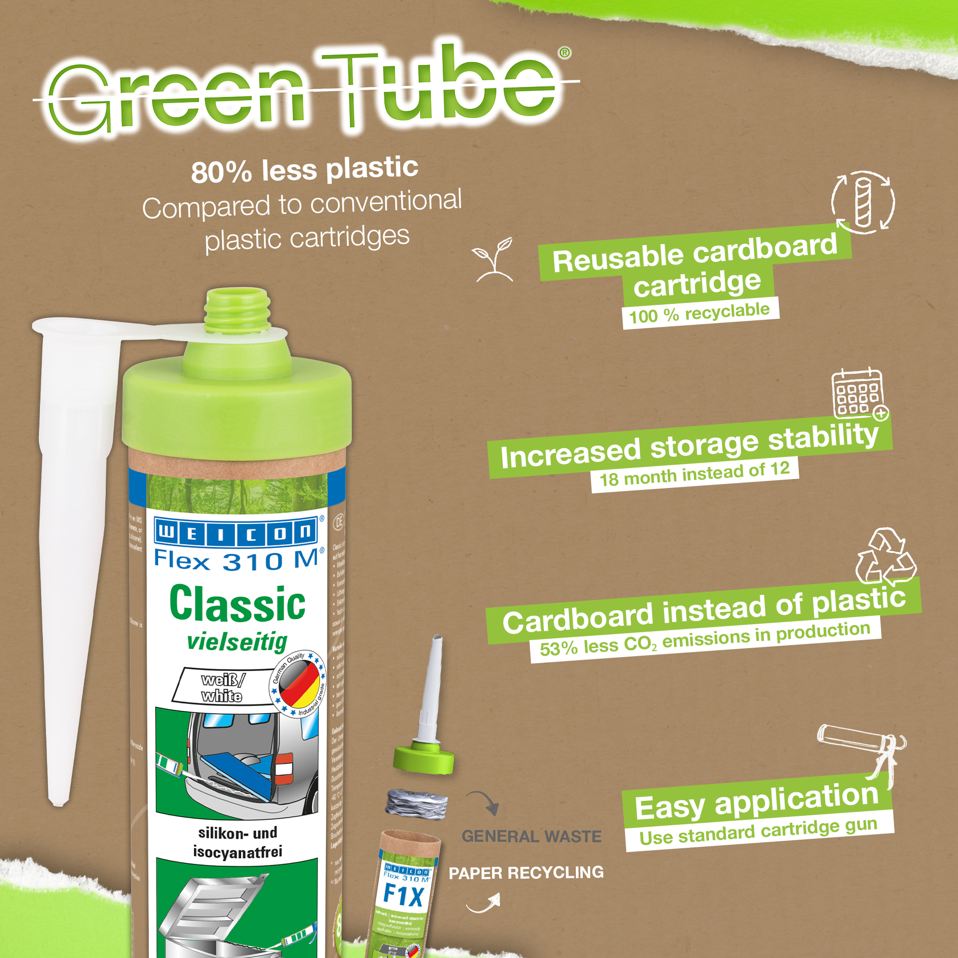 Für den Camper-Ausbau habe ich sonst immer die klassische Kartusche genutzt, nun wollte ich einmal die Variante mit der Pappkartische ausprobieren und es klebt genauso gut. Ich finde es eine gute und nachhaltige Alternative und werde in Zukunft auch die Pappkartusche kaufen.