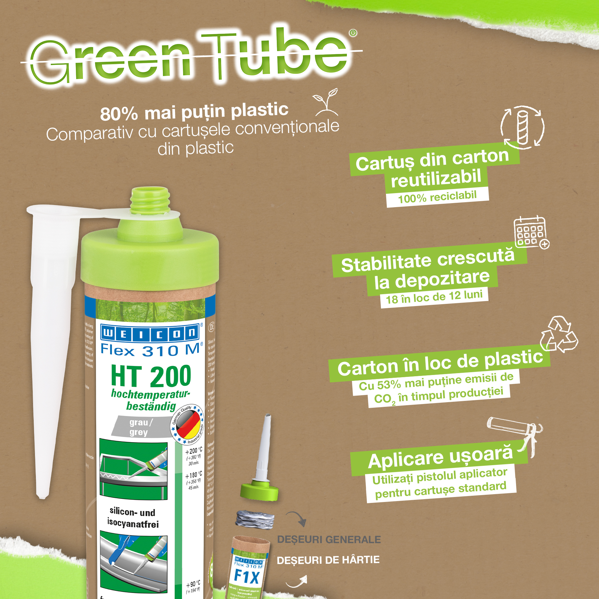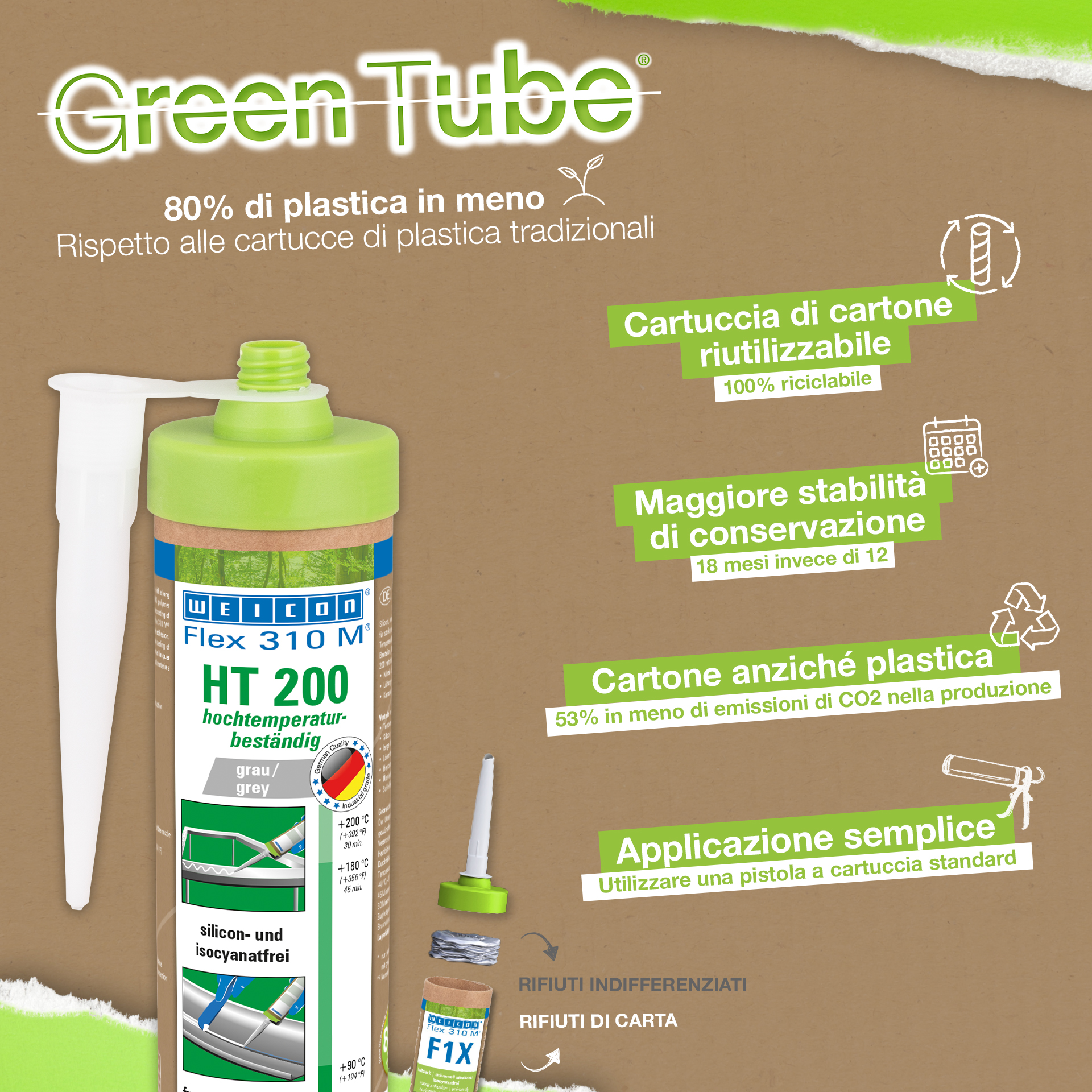 La haute résistance à la température permet de coller et d'étancher des éléments de construction qui doivent ensuite être thermolaqués (revêtus de poudre). WEICON Flex 310 M HT 200 peut être utilisé dans la construction métallique, la construction de réservoirs et d'appareils, la technique de ventilation et de climatisation, la construction de carrosseries, de conteneurs, de wagons et de véhicules. Flex 310 M HT 200 répond aux exigences pour les véhicules ferroviaires grâce au test selon DIN EN 45545-2 R1, R7, R17 HL3. WEICON Flex 310 M HT 200 est résistant aux températures élevées, possède une excellente résistance au vieillissement et est exempt de silicone, d'isocyanate, d'halogène et de solvant.