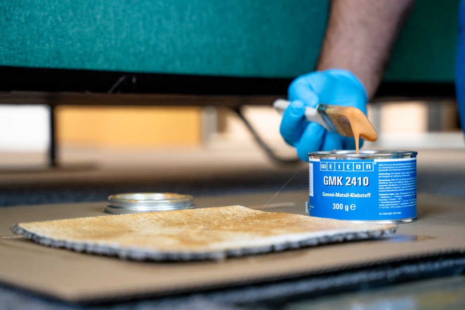 GMK 2410 est un adhésif à base de polychloroprène (CR) pour coller, de façon tenace, sur toute la surface et de façon flexible : - caoutchouc sur caoutchouc - caoutchouc sur métal GMK 2410 colle également des matières telles que caoutchouc mousse, cuir, feutre, matériaux isolants, textiles, bois et de nombreuses matières plastiques. WEICON GMK 2410 ne convient pas pour des matériaux tels que, par ex., la mousse de polystyrène, le polyéthylène, les pièces en polypropylène, la mousse de PVC souple et le cuir artificiel en PVC.