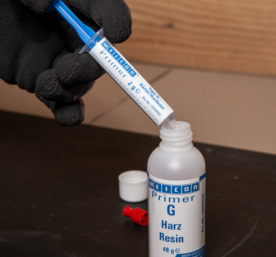 Le kit de réparation de bandes transporteuses WEICON est un kit de réparation en polyuréthane à deux composants pour les réparations, les retouches et les revêtements rapides de surfaces en caoutchouc. Il a une vitesse de durcissement élevée, une grande élasticité et une haute résistance à l'usure. Il est résistant aux chocs, très résistant à l'abrasion et possède une résistance au déchirement particulièrement élevée. En raison de sa grande tenue mécanique, il convient notamment pour la réparation des pièces en caoutchouc et en métal qui sont exposés à des chocs, à l'abrasion, à des vibrations ou à des oscillations. Le kit de réparation de bandes transporteuses se caractérise par sa simplicité et sa rapidité de traitement. Le système convient à de nombreuses applications, telles que la réparation et le revêtement de bandes transporteuses, la réparation de revêtements en caoutchouc, la protection souple contre l'usure et la réparation rapide des surfaces usées en caoutchouc. Outre le système de polyuréthane, l'ensemble comprend également un primaire pour le prétraitement de la surface et une spatule pour appliquer la masse de manière égale. Afin de couvrir le plus grand nombre de demandes possible, il existe outre le lot de travail classique de 500 g qui est traité à la main, un autre conditionnement, une double cartouche de 540 g qui est facile à utiliser.