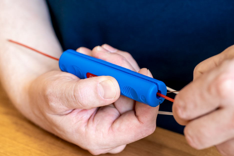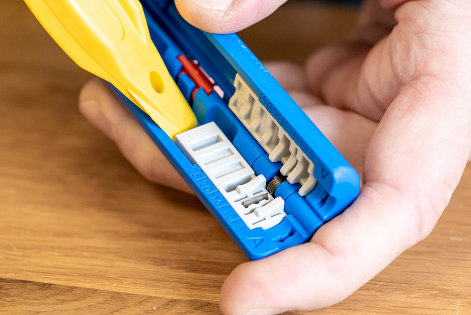 The stripping tool Fibre Optic Tube No. 2 has been specially designed for quick access to the optical fibres in loose tubes in buffer tubes from 1.2 mm to 4 mm diameter. It is suitable for a wall thickness of 0.15 mm to 0.6 mm. With the knife in the module and a special insertion point, the buffer tube can be conveniently put through the handy tool. This gives the user fast and process-safe access to the optical fibre in no time at all. The knife in the stripping tool easily cuts the buffer tube (e.g. made of PE) and the user can simply bend the tube without damaging the sensitive glass fibre. If necessary, the insertion point and the knife in the half-shells can be replaced or renewed as modules.