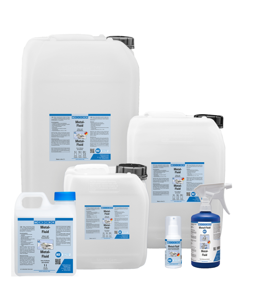 WEICON Metal-Fluid est un produit d'entretien et de nettoyage pour des surfaces mates et polies à l'intérieur. Il est homologué NSF. Metal-Fluid entretient, protège et nettoie les surfaces en métal, mais aussi en céramique, en bois, en verre et en plastiques. Il ne corrode ni les inscriptions gravées ou imprimées, ni les surfaces en matière plastique ni les joints en caoutchouc.