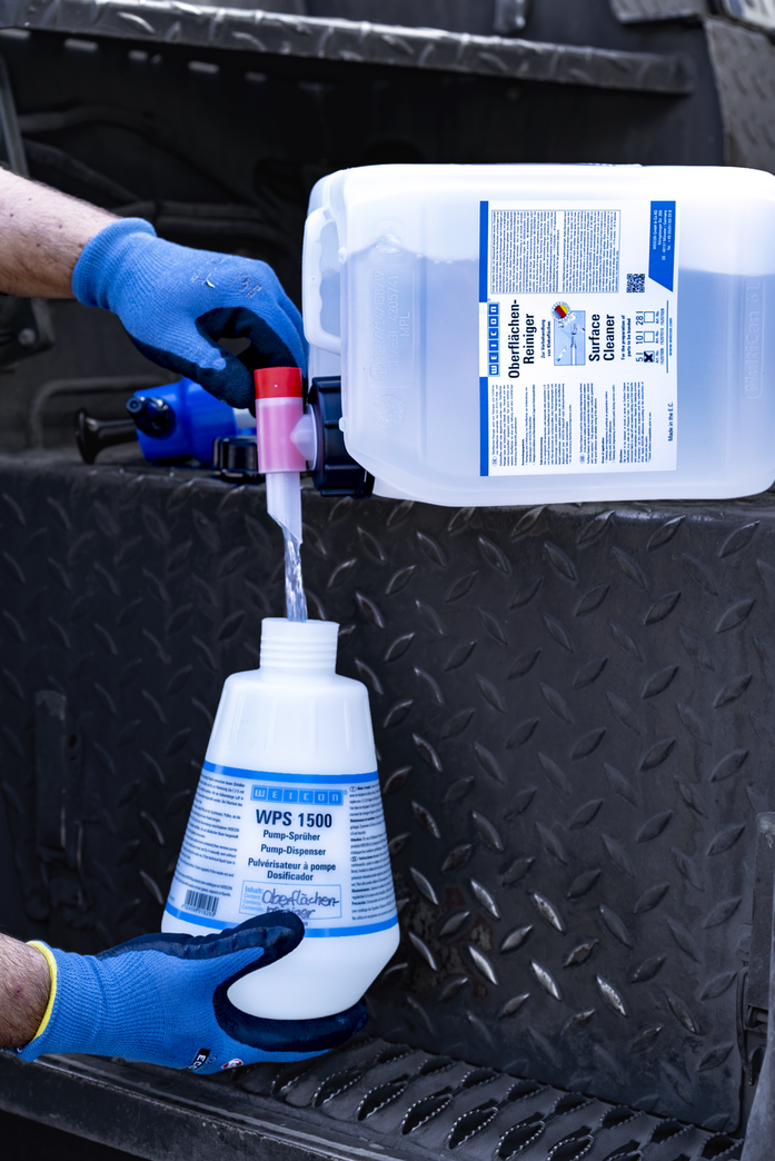 WEICON Nettoyant de Surfaces sert à nettoyer et à dégraisser les surfaces destinées à être assemblées ou étanchées à l'aide de scellants adhésifs WEICON. Le Nettoyant de Surface peut être appliqué sur des matières telles que le métal, le verre, la céramique et la plupart des matières plastiques. Il peut p. ex. servir à nettoyer et à dégraisser des éléments de machines au cours de travaux d'entretien.