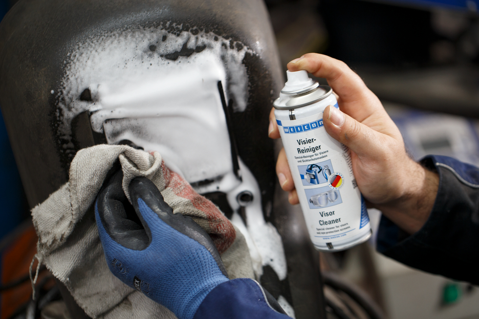 Le Nettoyant pour Visières WEICON est un nettoyant spécial pour nettoyer et entretenir des surfaces délicates en matière plastique et en verre. Antistatique et antireflets, il diminue les éblouissements et améliore la vision. Il enlève les impuretés dues aux insectes, la saleté, la poussière, la graisse et la nicotine avec ménagement et sans laisser de stries. Le Nettoyant pour Visières WEICON s'utilise sur des visières en tous genres, masques et lunettes de soudeur, verres de protection et de sécurité, boîtiers en matières plastique sur machines CNC, imprimantes, scanneurs etc. et sur toutes les surfaces en matière plastique et en verre.