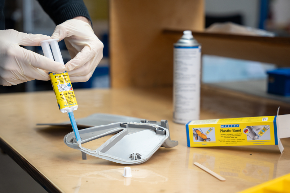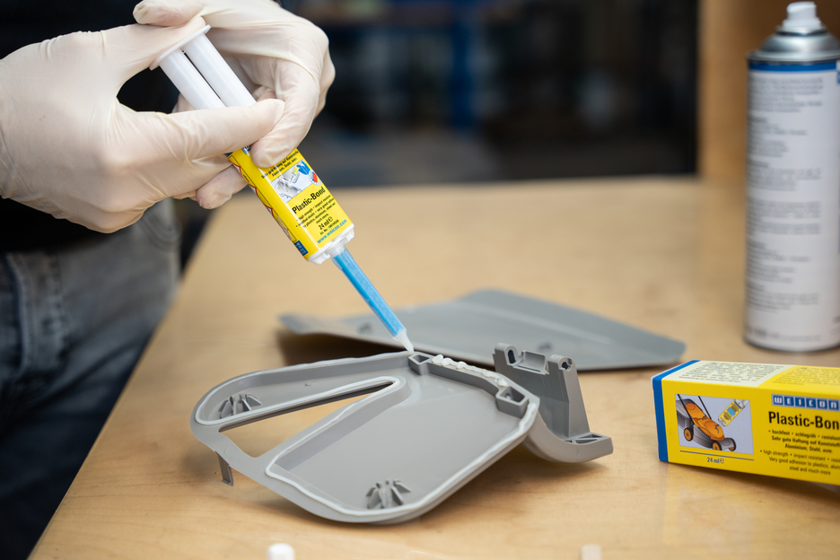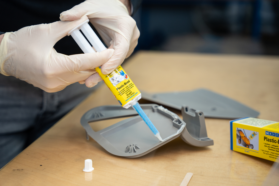 WEICON Plastic-Bond est un adhésif structural sans solvants avec une très bonne adhérence sur matières plastiques, aluminium, acier, etc. L’adhésif convient pour charges statiques ainsi que dynamique, possède une haute résistance aux chocs et au pélage et peut couvrir des joints de 5 mm de largueur. Plastic-Bond convient particulièrement aux collages structuraux où des liaisons de haute résistance sont nécessaires. L'adhésif est très visqueux et donc permet aussi une application sur les surfaces verticales. D‘un usage universel, cet adhésif structurel s‘utilise p. ex. en technologie des matières plastiques, construction métallique, construction de carrosseries et de véhicules, construction de machines, électrotechnique, de stands de foires et d‘expositions.