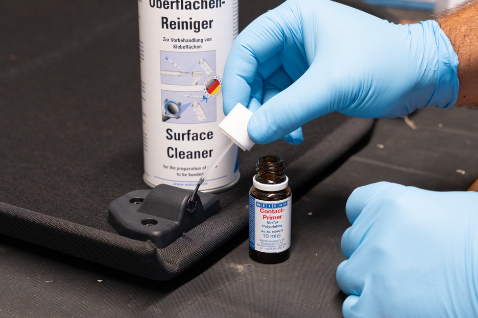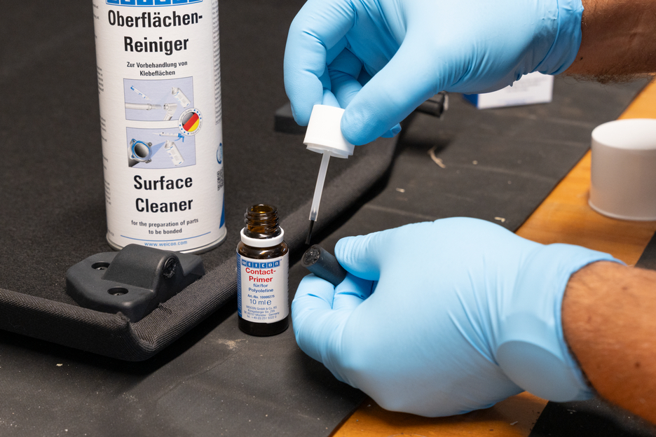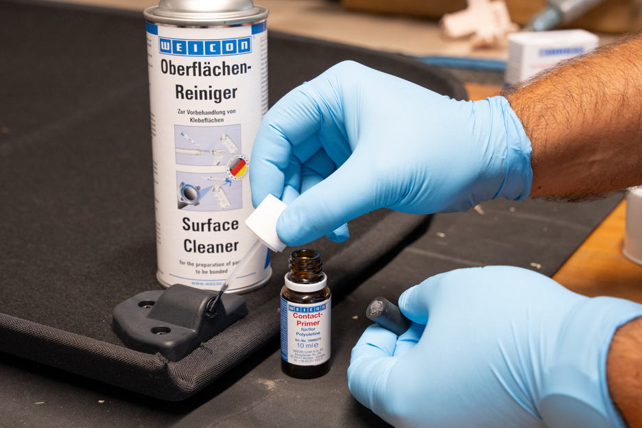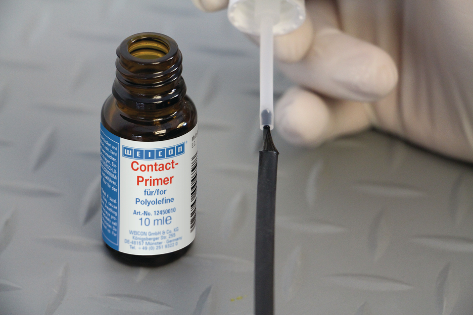 Sans prétraitement, de nombreuses matières plastiques ne peuvent pas être collées ou seulement dans certaines conditions. Le prétraitement de ces matières avec le Primaire WEICON Contact modifie leur structure superficielle. Ainsi, on peut assembler des matières plastiques qui, sinon, seraient difficiles, p. ex. le polyéthylène (PE) et le polypropylène (PP) du groupe des polyoléfines. Les élastomères thermoplastiques modernes (TPE), PTFE et les matières plastiques de même nature, ainsi que les silicones, peuvent être collés après un prétraitement avec le Primaire WEICON Contact.