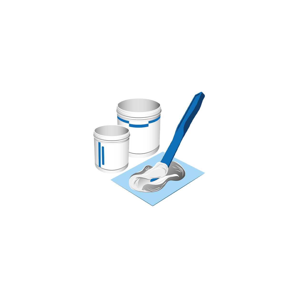 Les colles à base de résine époxy font partie des colles réactives. Les systèmes à deux composants sont composés d'une résine et d'un durcisseur et sont appelés WEICON Métaux Plastiques.