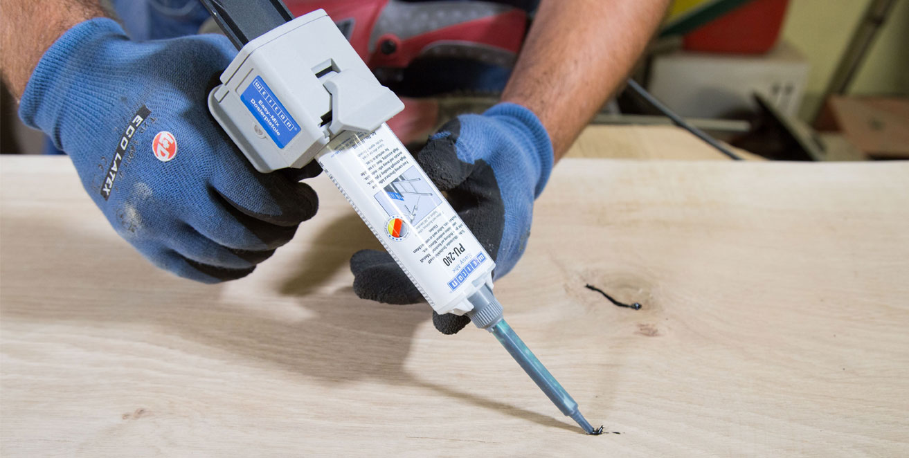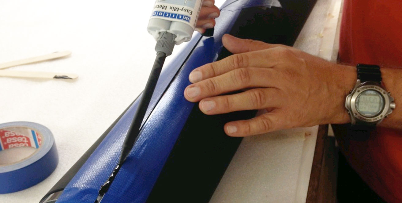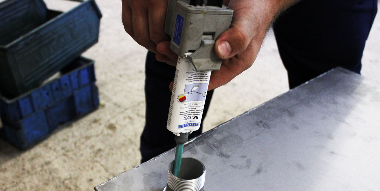 - Le dosage, le mélange et l'application de l'adhésif bicomposant se font en une seule opération.