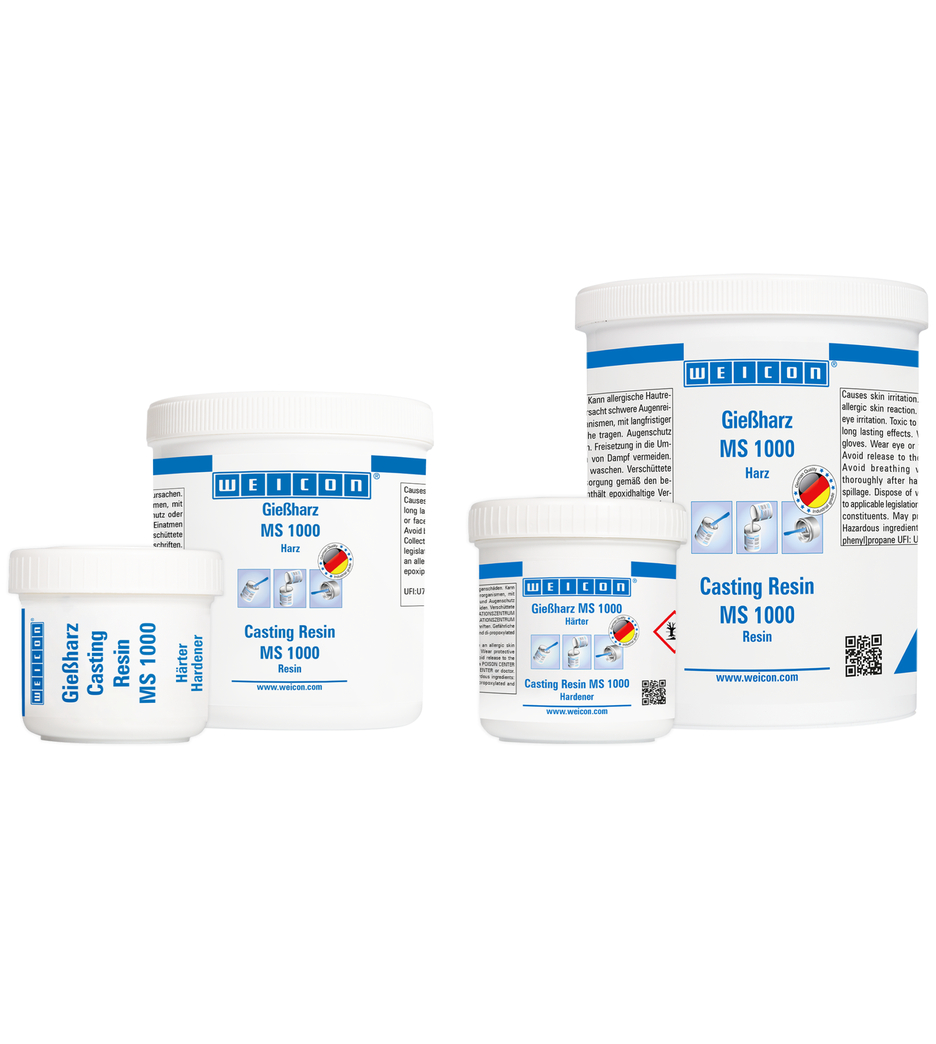 La résine de coulée WEICON MS 1000 est une résine transparente, très coulable, à haute résistance mécanique. Ce type convient pour une grande variété d’applications. MS 1000 adhère bien sur le métal, bois, mousse dure et beaucoup de types plastiques. Il peut être utilisé pour des collages de grandes surfaces et pour pour laminer des douilles et des vis filetées en composite. Grâce à une viscosité très basse, cette résine époxy convient très bien pour la coulée de composants électriques. Il peut être utilisé dans la production de fibres composites, dans la fabrication d'outils et de moules, dans l'industrie électrique, dans la construction mécanique et dans de nombreux autres domaines industriels. Le MS 1000 présente un bon mouillage et une bonne pénétration des tissus de verre et est donc bien adapté au laminage des fibres de verre, d'aramide et de carbone pour la fabrication de pièces renforcées de fibres. Il peut facilement être mélangé avec une substance de charge (en poudre, fibreuses et tissées).