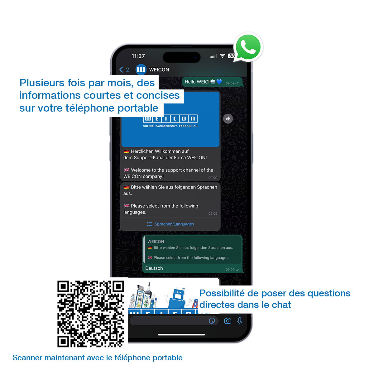 Le service WhatsApp de WEICON est gratuit pour vous.