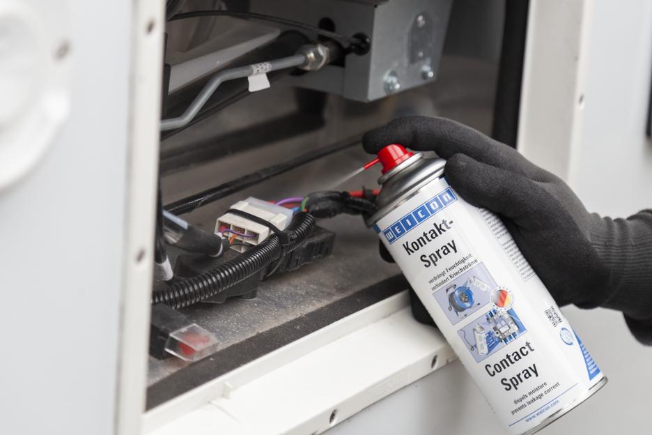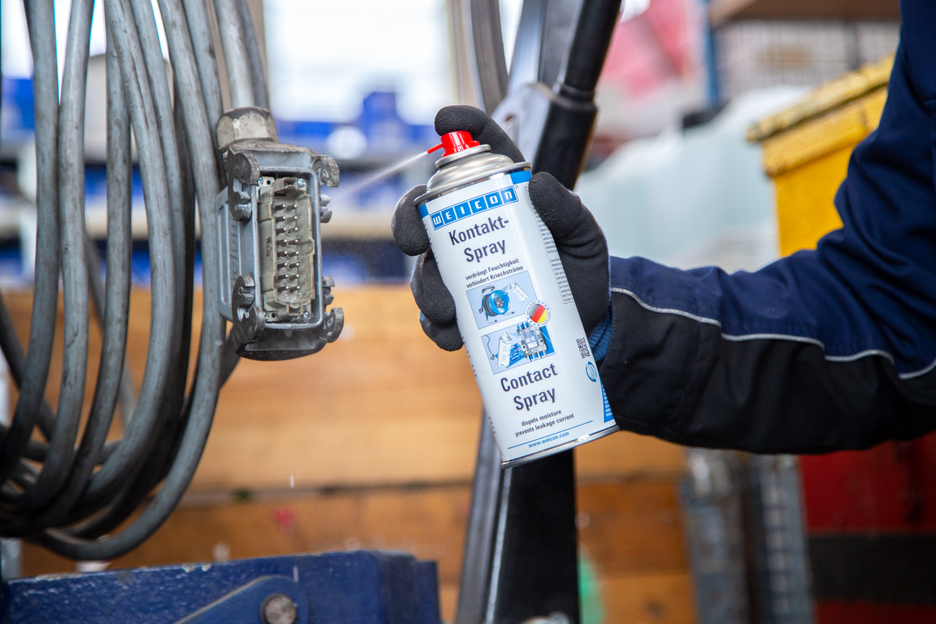 Le Spray Contact WEICON est basé sur une combinaison spéciale d‘agents actifs pour entretenir et protéger les contacts et les composants électriques. Il écarte l‘humidité sur les contacts électriques, évite les courants de fuite et les pertes de tension, maintient les contacts, fusibles, raccords de câbles etc. libres d‘oxydation et de couches de sulfures. De ce fait, le Spray Contact WEICON est utilisé p. ex. dans les boîtiers à fusibles, les interphones, la motorisation de portes, les prises électriques, les connexions de câbles et de fiches, les dévidoirs de câbles et les prolongateurs, les outils de jardin électriques et les installations d‘éclairage.