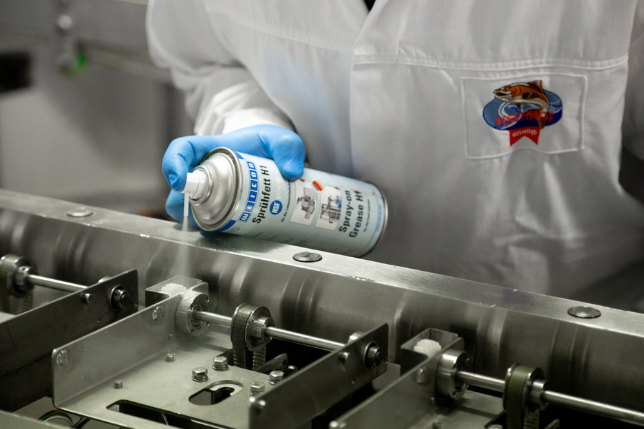 WEICON Spray Graisse H1, inodore et insipide, spécialement conçu pour répondre aux besoins des industries alimentaire, cosmétique et pharmaceutique. Elle a une haute résistance thermique et est homologuée NSF. Le Spray Graisse H1 convient spécialement pour l'entretien et la maintenance dans les brasseries et l'industrie des boissons, les grands abattoirs, les fabriques de conserves, les torréfacteurs de café, les grandes cuisines professionnelles, les piscines, hôtels, hôpitaux et partout où un contact direct avec des denrées alimentaire ne peut pas être exclu.