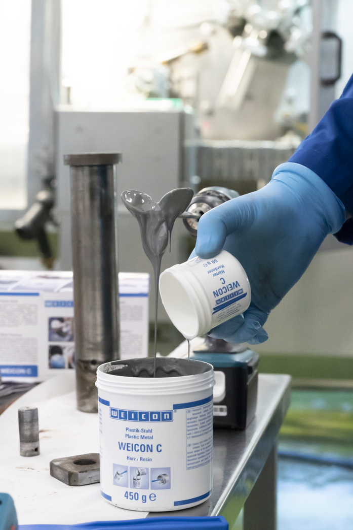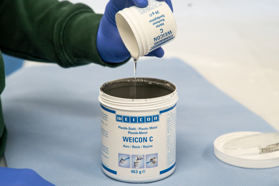 WEICON C est un système résine époxyde fluide et résistant à la température, qui convient surtout pour l'utilisation industrielle. L'adhésif est non corrosif, anti-magnétique et durcit sans pratiquement aucun retrait. WEICON C est particulièrement approprié comme un adhésif pour des applications de grande surface, pour la coulée de moules ainsi que pour la production de dispositifs et outils fixation (par exemple, moulage par injection). Il convient dans la construction d'outils et de moules ainsi que dans de nombreux autres secteurs industriels soumis à des fortes contraintes thermiques.
