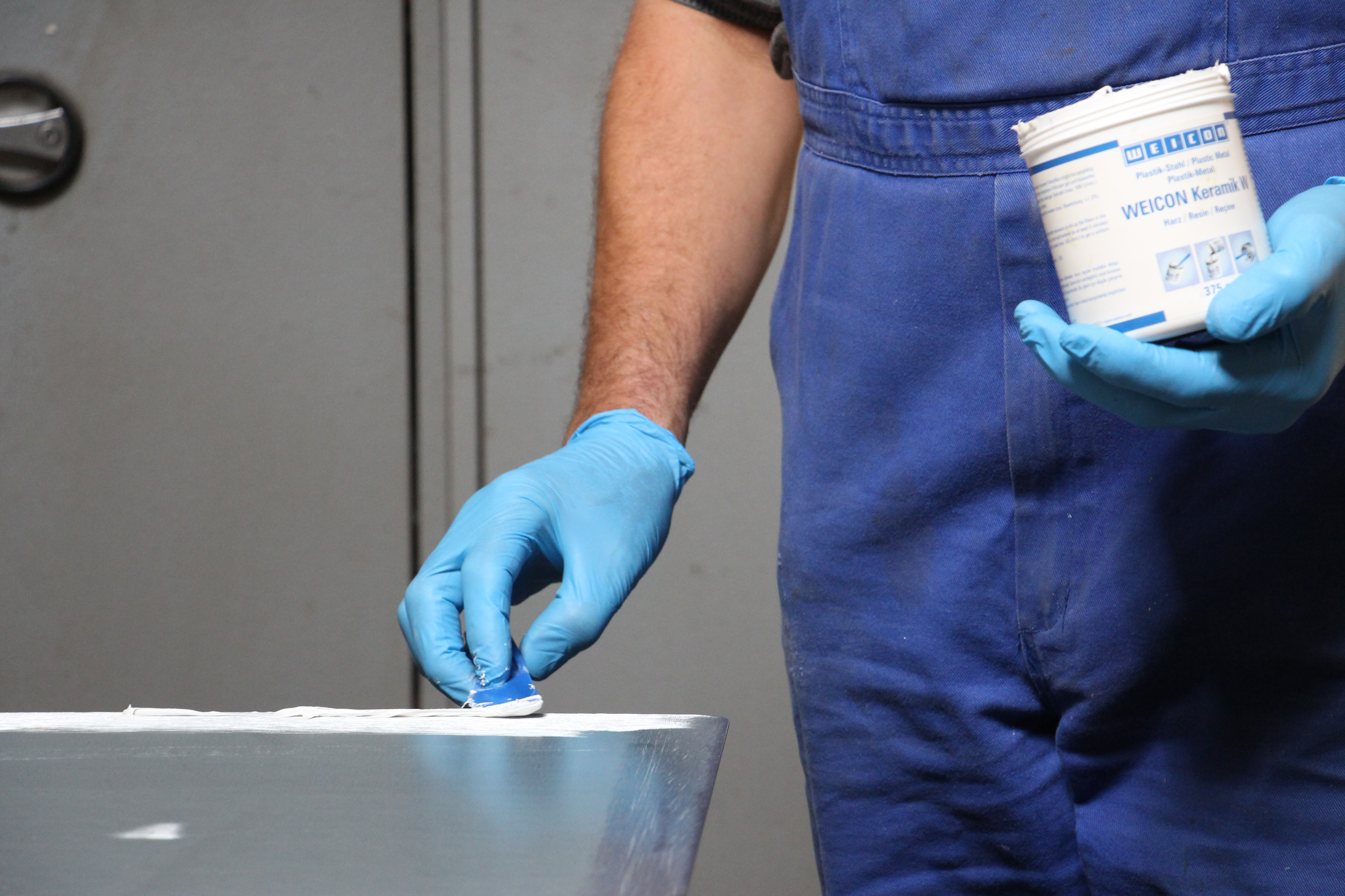 Le système de résine époxy WEICON Céramique W offre une haute protection contre l’usure et une bonne résistance à l'abrasion. Il possède une grande résistance aux agents chimiques ainsi qu’aux températures élevées jusqu’à +230 °C; brièvement jusqu’à +250 °C. Céramique W ne coule pas, est spatulable, s‘applique sur des surfaces verticales et même au-dessus de la tête. Il convient pour coller ou revêtir des meules en oxyde d‘aluminium dans la construction de moulins, pour revêtir des corps fortement sollicités, pour protéger de l‘usure des paliers lisses, des toboggans et des tuyaux et partout où, pour des raisons esthétiques, l‘utilisation de produits sombres n‘est pas souhaitée. Le produit s‘utilise dans la construction de machines et d‘installations, de moulins, d‘appareils ainsi que dans beaucoup d‘autres domaines industriels.