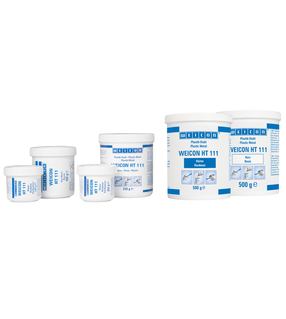 Le système de résine époxy WEICON HT 111 sert à la réparation et à l'amélioration de pièces métalliques. Il est pâteux, rempli d'acier et résiste à des températures élevées jusqu'à 200 °C (392 °F) ; à court terme, il résiste à des températures jusqu'à 280 °C (536 °F). WEICON HT 111 est résistant aux produits chimiques, ne se corrode pas et s'utilise dans un rapport de mélange de 1:1. Le matériau de réparation convient à l'application sur des surfaces verticales et peut être utilisé pour des réparations métalliques et des collages sur des pièces en fonte et en métal, pour le remplissage de retassures, pour la réparation de dommages sur des récipients, des carrosseries et des pièces de machines et pour l'étanchéité de pompes et de tuyaux. Grâce à ses propriétés, ce matériau composite est particulièrement adapté aux applications dans la construction de machines et d'installations, dans la construction d'appareils ainsi que dans de nombreux autres domaines de l'industrie.