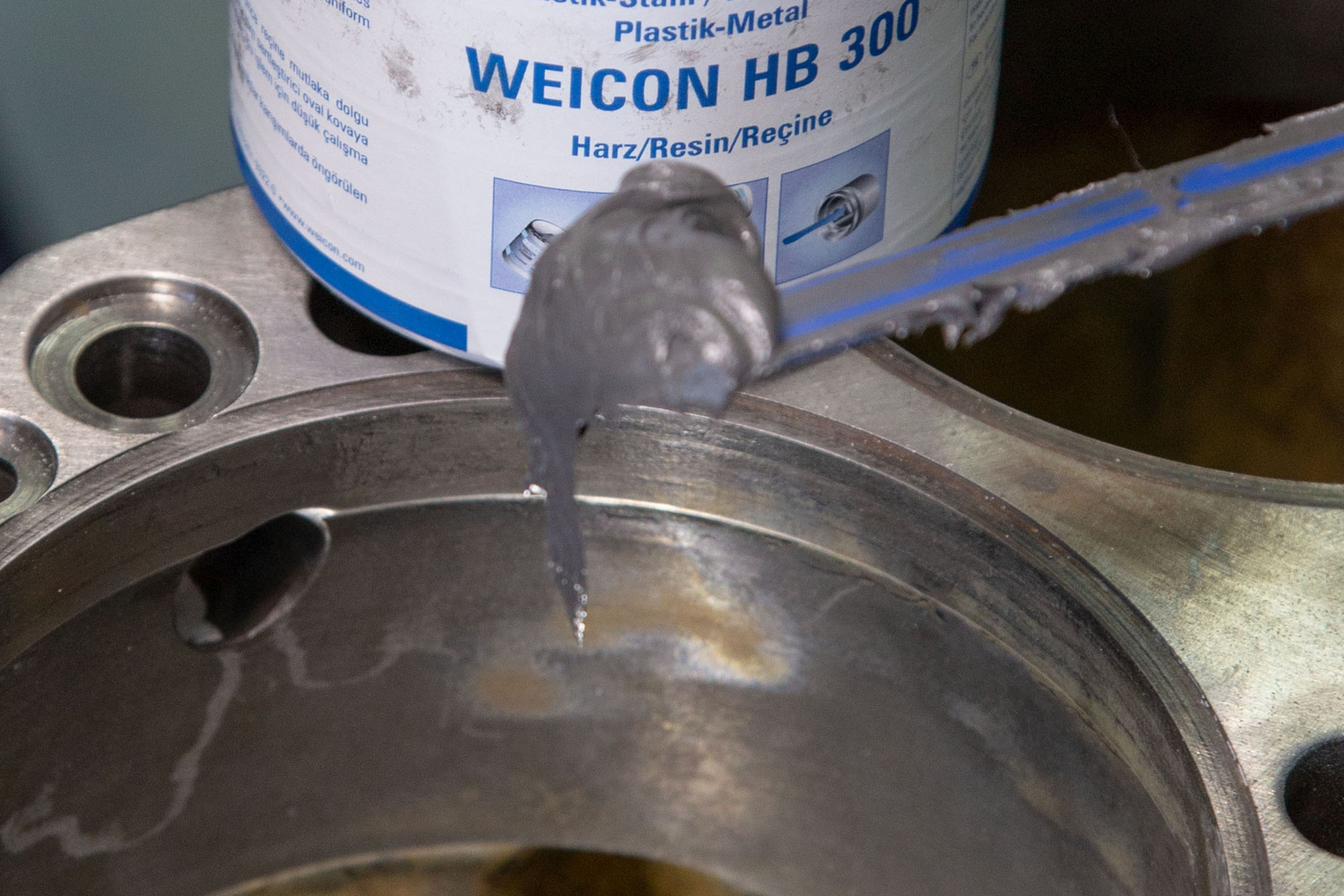 Ship propellers are often subject to severe wear damage because they are constantly in contact with aggressive media such as seawater. To repair heavily strained propellers and protect them from further damage, the epoxy resin system WEICON BR can be used. The pasty repair compound is bronze-filled and is therefore ideal for the repair, preparation and filling of blowholes, bronze parts and bronze castings.