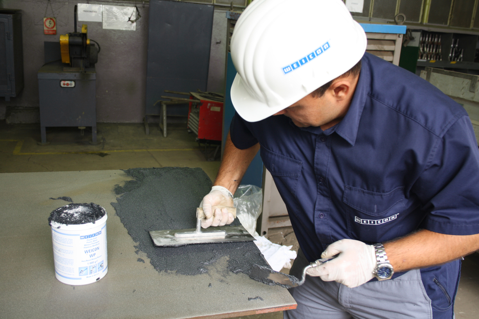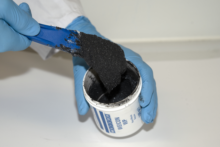 WEICON WP convient pour protéger des surfaces fortement sollicitées. Eine Beschichtung mit dem Epoxidharz-System bietet hohe Festigkeiten gegen Verschleiß und Abrieb und ist extrem beständig gegenüber Chemikalien. WEICON WP prévient la perte de métal et remplace les alliages anti-abrasion traditionnels, les carreaux de céramique ou les revêtements de caoutchouc ainsi que les revêtements métalliques soudés. Il s‘utilise pour reconstituer des surfaces métalliques usées ou servir de revêtement anti-usure. Il offre une protection particulièrement forte contre l‘usure par des particules frappant la surface latéralement.